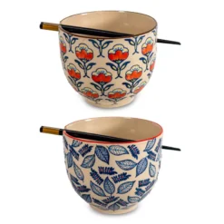 PECHINO LINE Set De 2 Bols Coupelle En Grès D11.5 300 Ml Avec Baguettes Décor Rouge WD Lifestyle