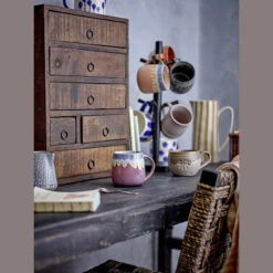 Couleurs douces et design minéral, ces mugs s’accorderont parfaitement avec de la poterie ou du bois sur la table ou en décoration.