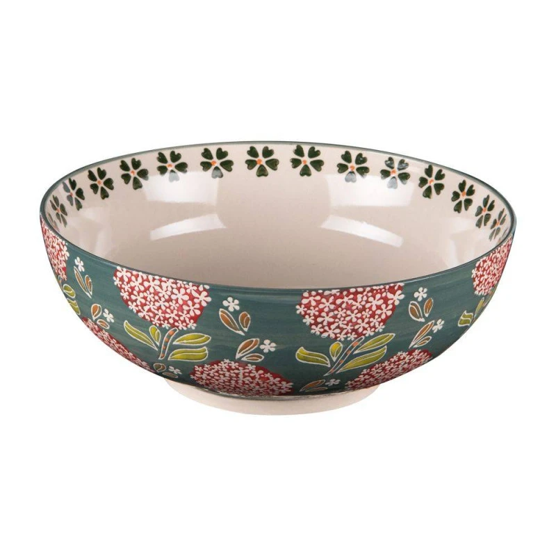 Saladier en grès, dense et robuste, entièrement peint à la main.