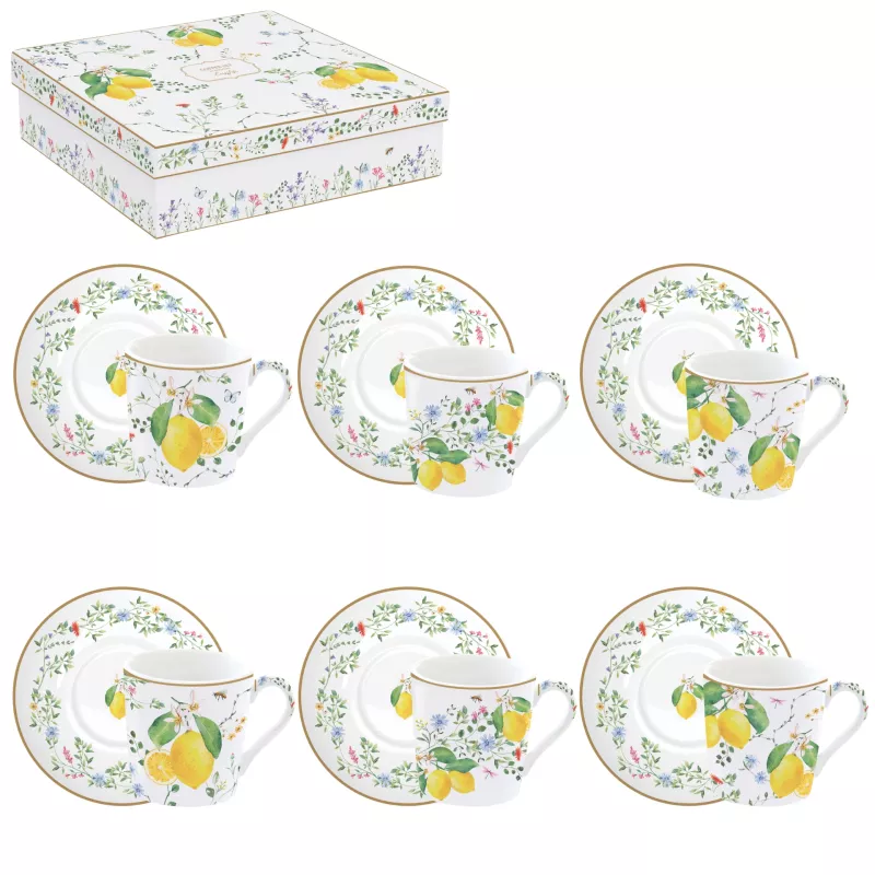 Découvrez notre ensemble de 6 tasses à café Nespresso et sous-tasses, issu de la collection Fleurs et Citrons.