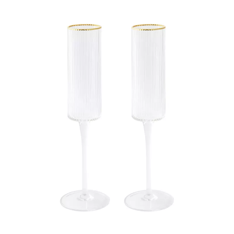 FlĂ»te en verre plissĂ© transparent avec fil d’or d’une capacitĂ© de 200 Ml