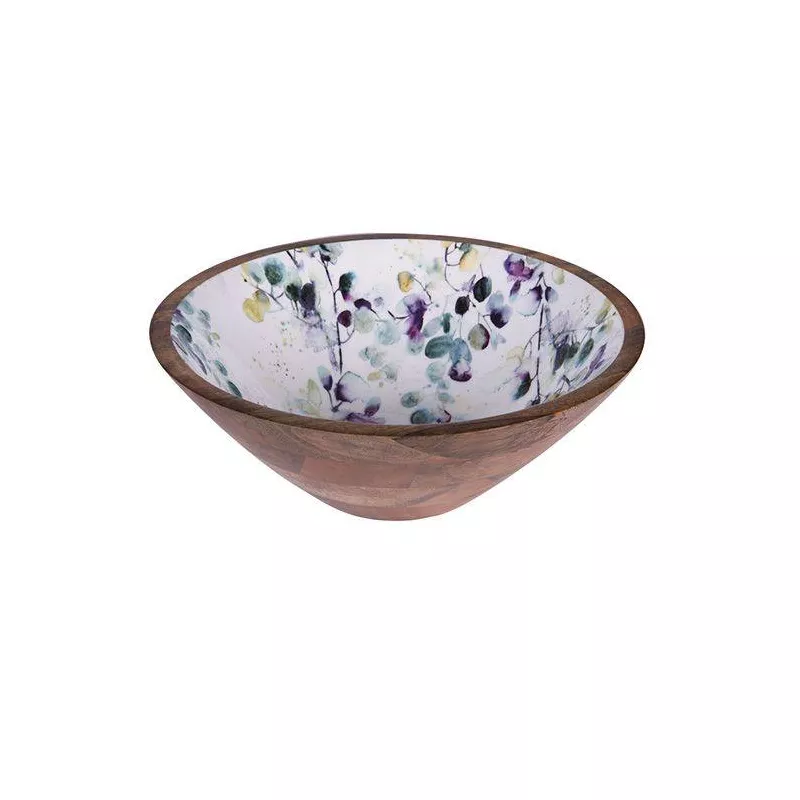 Saladier de 30 cm de diamètre extérieur en bois de manguier avec son intérieur recouvert de résine époxy, certifiée pour contact alimentaire.