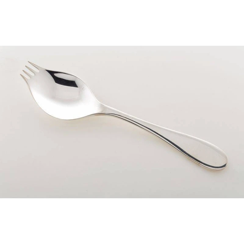 Un manche ergonomique profilĂ© et Ă©quilibrĂ©, constituent cet ustensile original rĂ©unissant Ă lui seul les fonctions sĂ©paratives des trois couverts habituels.Â
