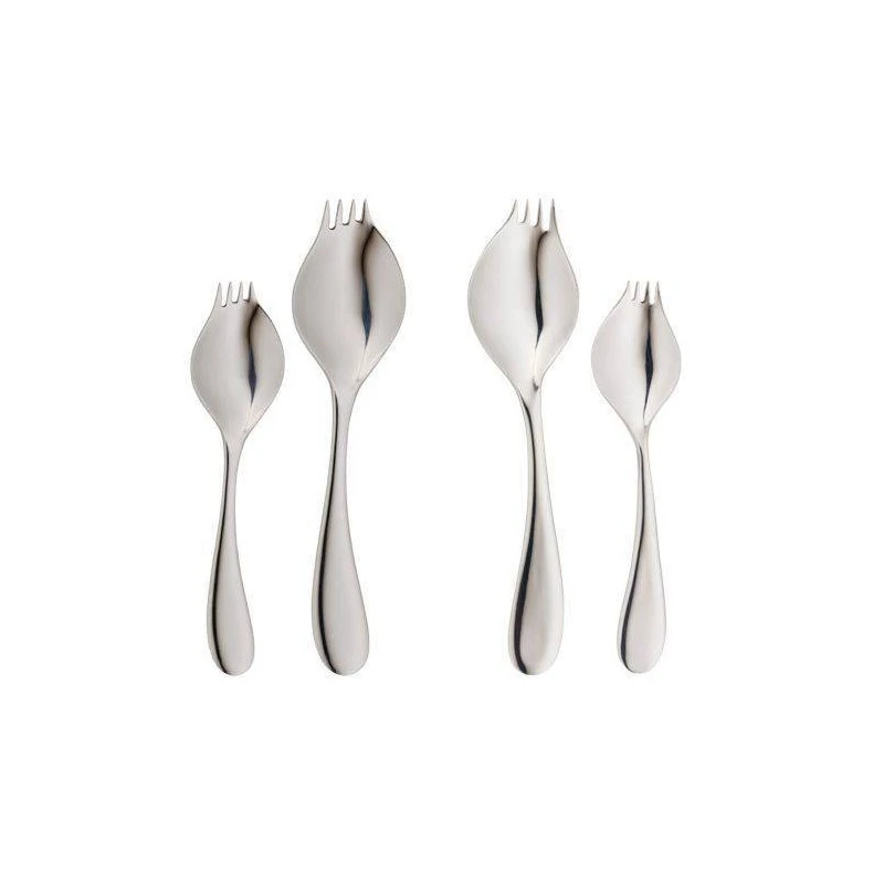 Fourchette, cuillère et couteau Ă la fois, la GEORGETTE® est l’ustensile insolite et Ă©lĂ©gant, au service de l’amuse-bouche jusqu’au dessert.