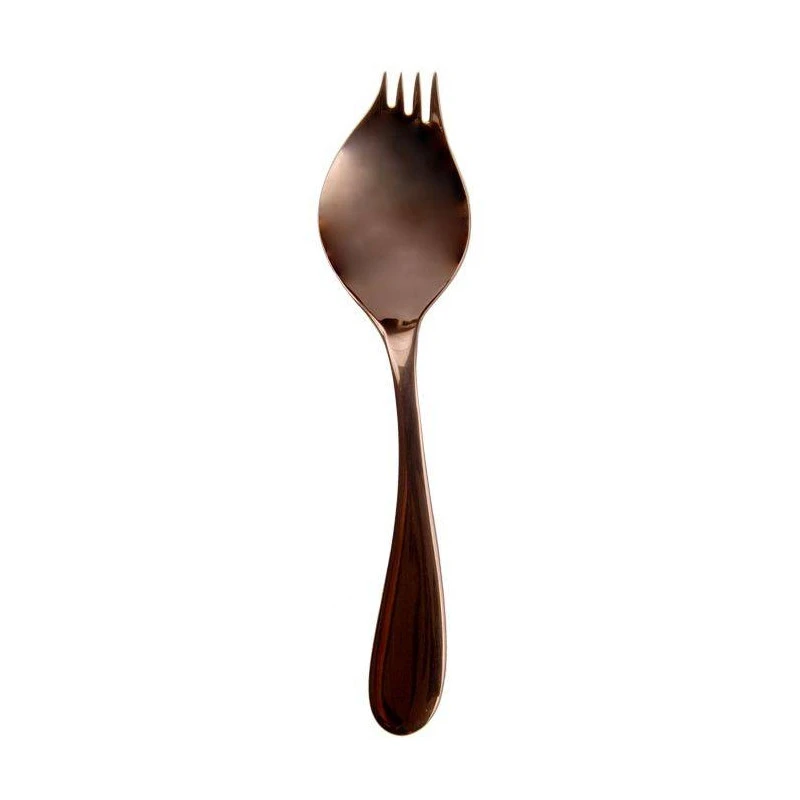 Un manche ergonomique profilĂ© et Ă©quilibrĂ©, constituent cet ustensile original rĂ©unissant Ă lui seul les fonctions sĂ©paratives des trois couverts habituels.Â