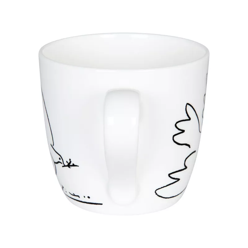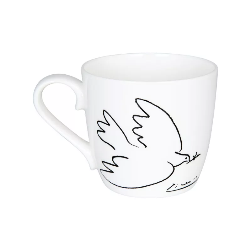 Ce mug en porcelaine Bone China de haute qualitĂ© arbore le cĂ©lèbre motif de la colombe de la paix, symbole universel d’espoir et d’harmonie.