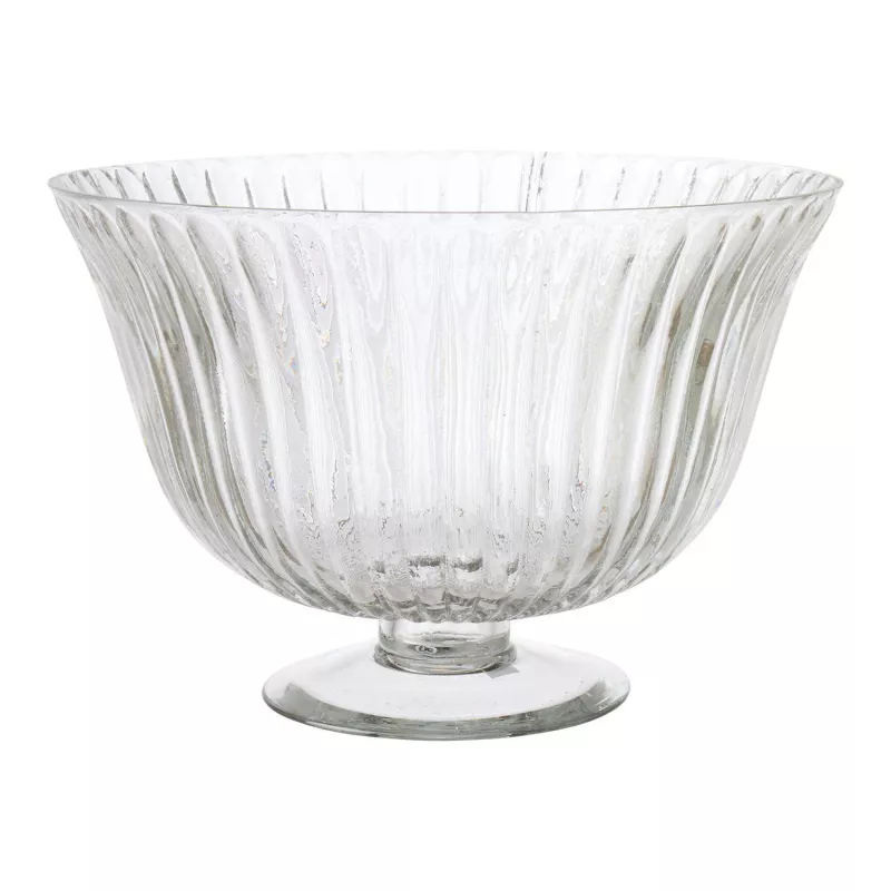 Jolie saladier en verre ondulé sur pied. Contenance 3,5l