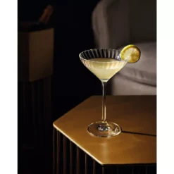 - Le design symétrique de ce verre à pied évoque une esthétique intemporelle.
