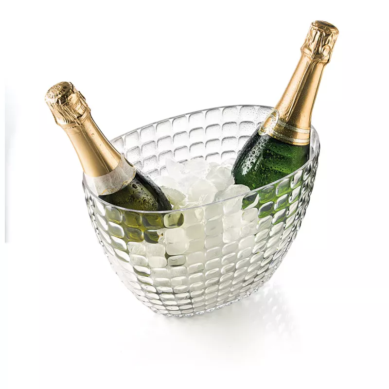 Ce seau rafraîchisseur, roi incontesté des tables de fête, se distingue par sa forme ovale et sa capacité à accueillir deux bouteilles de vin mousseux ou de vin blanc aromatique. Parfait pour accompagner vos soirées, dîners ou apéritifs en famille ou entre amis, il allie élégance, couleur et praticité. Son bord lisse, sans festonnage, est spécialement conçu pour minimiser les risques de casse en cas de contact avec du verre.